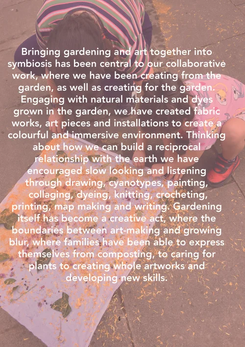 Documenting a two-year project 'Cultivate Create' that I had the pleasure of being the lead Artist-gardener on working alongside Mattie O’Callaghan delivering a programme of fortnightly workshops, promoting family resilience, wellness and giving access to much needed green space in North Kensington we created the Zine together as a record of our time there.